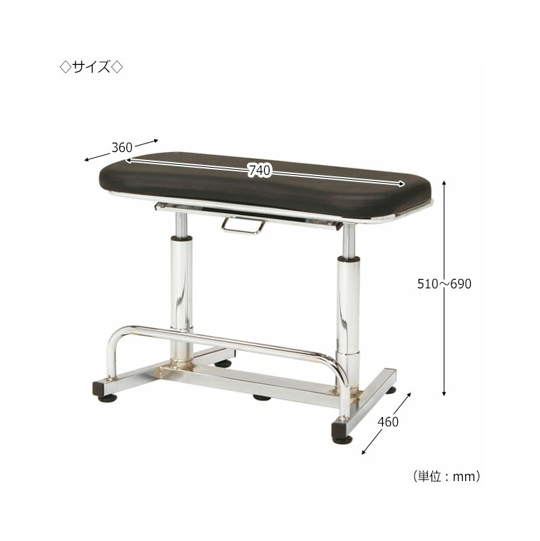 740mmタイプ: W740 x D460 x H510〜690mm (座面: W740 x D360mm)