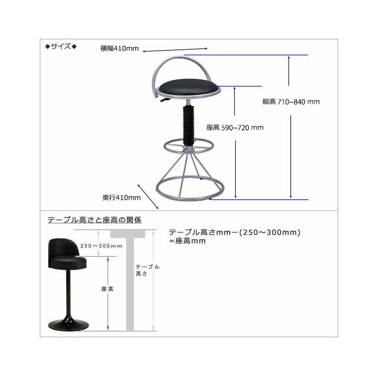 ・サイズ: W410 x D410 x H710〜840mm (座面: SH590〜720mm)